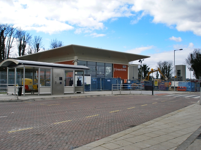 All structures in the above view are recent builds: on the left is the bus shelter serving the ''Fastrack'' service; behind this is the new main station building; finally, to the right are the lift shafts, which were erected on Sunday 16th March, during line closure. © David Glasspool