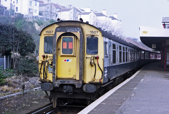 Still wearing BR Blue and Grey livery, but with Network SouthEast cab logo, refurbished 4 CEP No. 1507 has