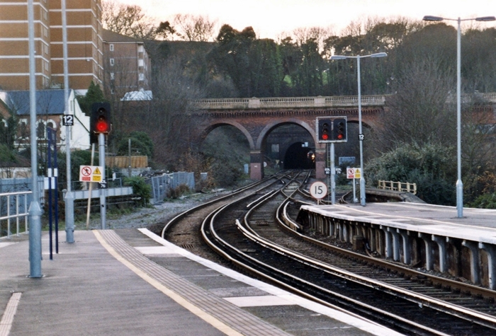 Looking from the western end of platform 2, it is possible to see right through the 788-yard-long Hastings Tunnel