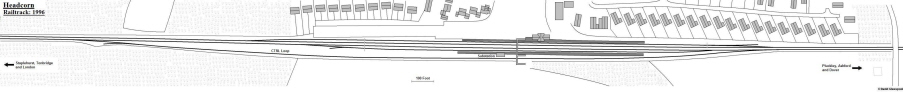 Track Plan of the wholly rebuilt Headcorn station, including Channel Tunnel loop and twin-span footbridge. Please note that this is a large drawing of considerable width. Drawn by David Glasspool