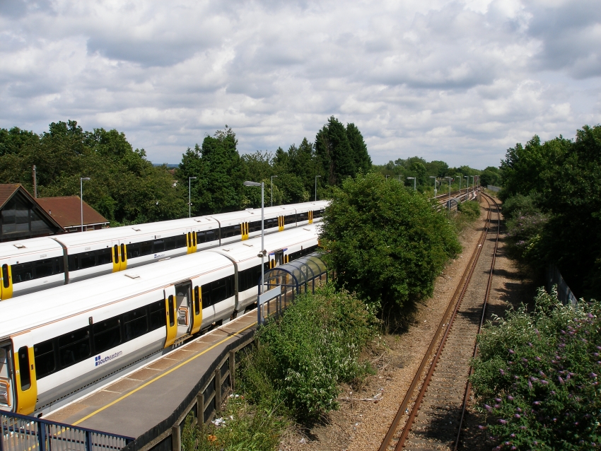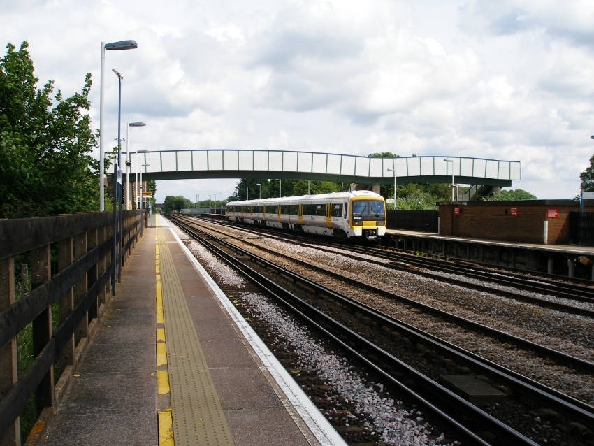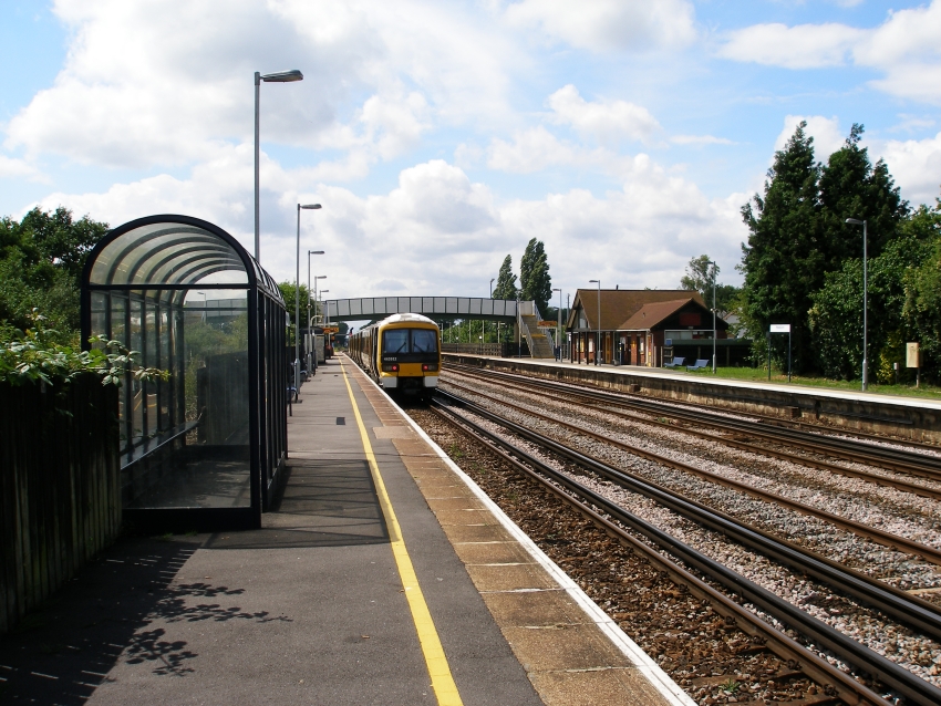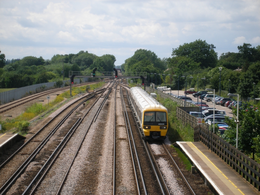 Another Eastward view shows No. 465922 once again, stabled in the ''up'' loop waiting for a fast service to pass. In the foreground are the platform extensions which date from the station's rebuilding in 1989. The red brick structure on the right is an electricity substation, whilst above it is the second span of the footbridge which gives access to a public footpath. © David Glasspool