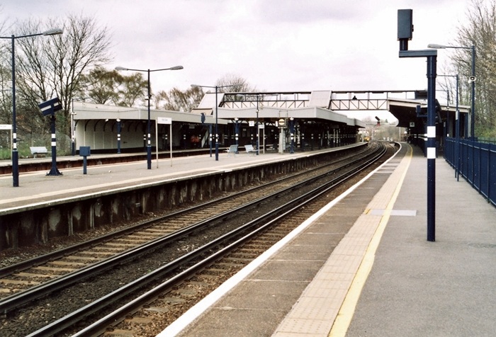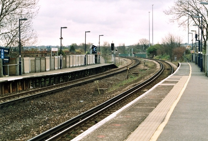 A London-bound view of the Dartford Loop Line platforms reveals the only elements of SER origin remaining: the lattice footbridge and a handful of canopy struts. This side of the station was rebuilt concurrent with the main line platforms. The space where a third track laid is obvious. © David Glasspool