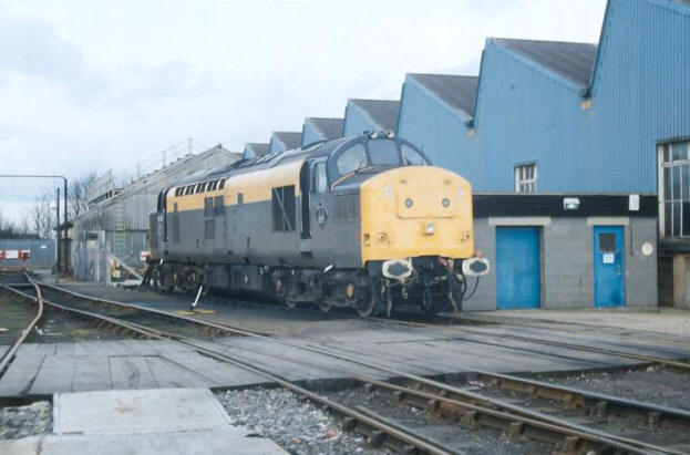 On 24th February 1995, Dutch-liveried Class 37 No. 37375 is seen stabled alongside the rebuilt engine shed complex. The pitched-roof asbestos-clad structure in the background was formerly a diesel stabling shed, but this lost its rail connection during the 1993 rebuilding work. Indeed, the track the Class 37 is residing on here has also since been lifted. The track formation in the foreground leads to the diesel refuelling shed, which is behind the camera. © David Glasspool Collection