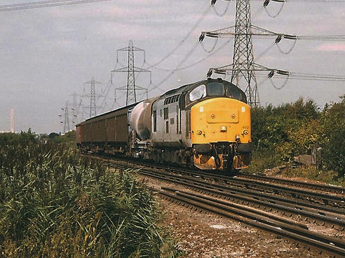 Class 37 No. 37402 "Bont Y Bermo" is seen arriving at Hoo Junction with the 6O74 Bescot to Sittingbourne freight. No. 37402 is still with us: a thorough overhaul of this diesel was completed in November 2012 and it is now in service with freight operator "Direct Rail Services". © Edward Clarkson