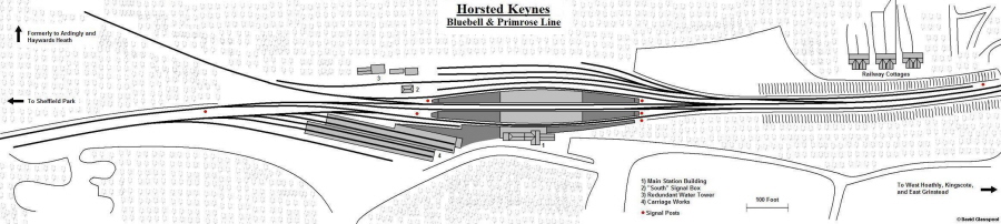 Track Plan of the current layout at Horsted Keynes. Click the above image for the full size version. Please note that this is a large drawing of