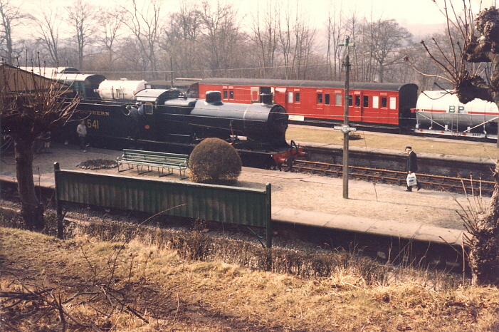 In the background can be seen the Mobile Fire Train, once a regular sight at Horsted Keynes. It was formed of ex-LSWR Third Brake coach No. 1520, of 1910 origin, and one of a couple of water tank wagons at the site. ''Q'' Class 0-6-0 No. 541, completed at Eastleigh Works in 1939, is seen terminating with a service; the station was at this time the northern limit of operation, services to Kingscote being a decade away. © David Glasspool