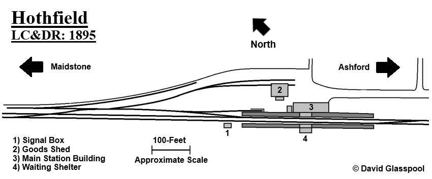 Lord Hothfield was the chief landowner in the area, so it is probable that he stipulated the provision of a station as a condition of allowing the railway to pass through his property. In The Official Guide to the South Eastern Railway, 1893, Lord Hothfield is listed as one of that company's directors, although as a side note, the line which ran through his land was operated by the rival London, Chatham & Dover Railway (LC&DR).