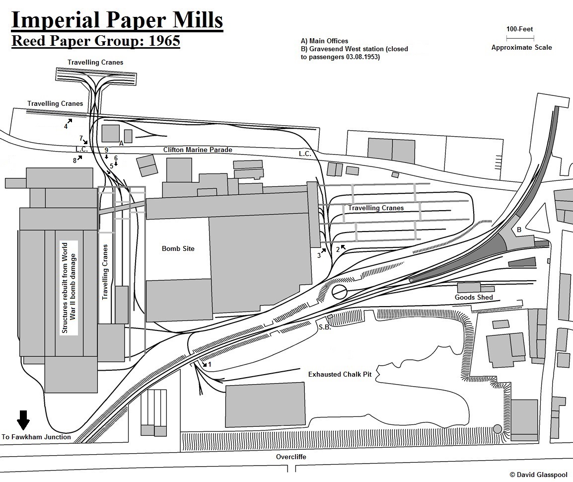 Most of the area depicted in the above track plan has been redeveloped beyond recognition, but there are fragments which still exist today. These include the main offices at the top left (labelled "A"); the T-shaped jetty; the pointwork immediately below the number "4"; and finally, the very tip of the ex-LC&DR pier at the top right. The building of the retail park required Clifton Marine Parade to be split into two dead-end roads. © David Glasspool