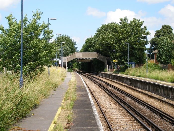 On the day of the above southward view from the footbridge, the station lampposts were being re-painted from