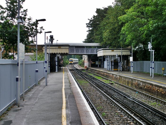 A London-bound view shows the original SER structure on the left, the later covered footbridge, and the ''down''