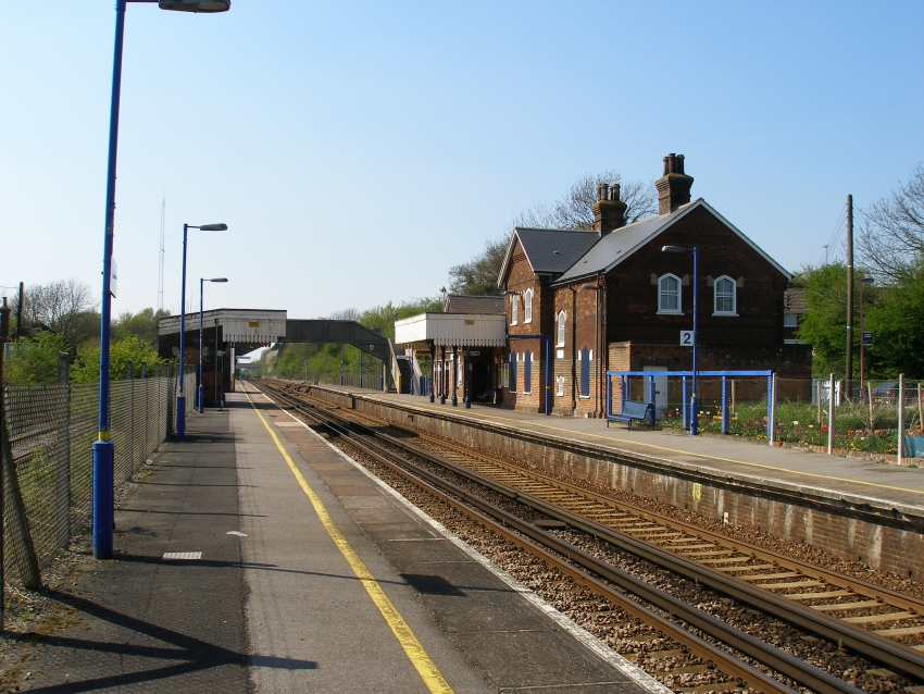 The need for ‘’fast’’ trains to overtake stopping services on the Maidstone East route has ensured that Lenham retains an interesting layout. The station came into use on 1st July 1884 with the whole of the "Maidstone & Ashford Railway’s’’ 18¾-mile line between its namesake locations. The station buildings east of Maidstone were based on the outline of the main structure earlier erected at Sevenoaks Bat & Ball, although there were distinct differences. Lenham would appear to command the largest of the buildings along the route, at 85-foot long. The main structure was positioned on the ‘’down’’ side, was two storeys high with pitched roof sections, and was constituted of red brick. As previously mentioned within the Charing section, stations along the 1884 route were either built with red or crème brick, and their very colour seemed to determine the size of the main building. The opposing platforms at all stations were equipped with a standardised brick-built 27-foot long waiting shelter. These attractive structures demonstrated an intricate canopy matching the length and pattern of those extending from the main station building opposite, of which they were placed directly in line with. Like the majority of sites between Otford Junction and Ashford, no footbridge was in evidence at Lenham, a track foot crossing at the eastern ends of the platforms instead being in use.