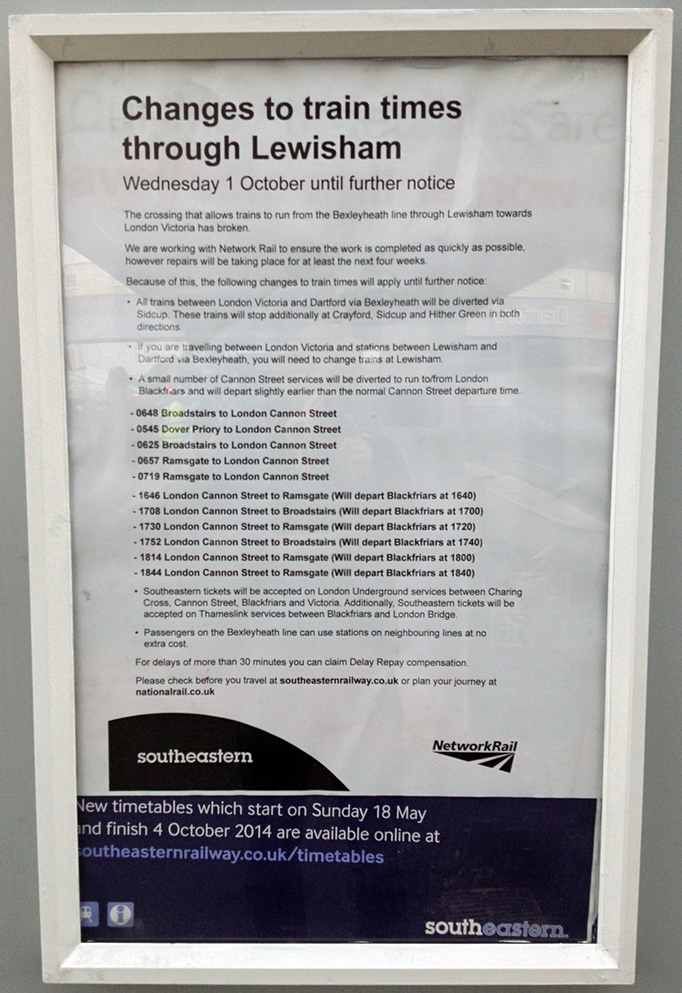 Service alterations in response to the broken crossing at Lewisham. © David Glasspool