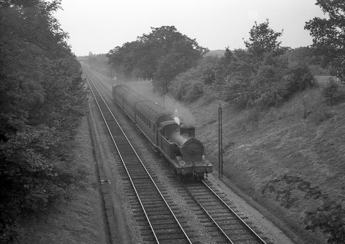Looking west, in the opposite direction to the previous photograph, an "H" Class 0-4-4 - which appears to be No. 1533 - is seen with an ex-SE&CR "Birdcage" set, heading towards Tonbridge with a service from London Bridge. © David Glasspool Collection