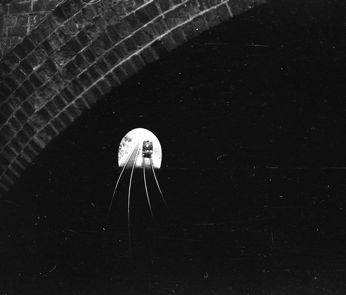 Looking north through "Little Browns Tunnel 1" (116-yards-long), an Oxted to Brighton via Eridge service is seen approaching. © David Glasspool Collection