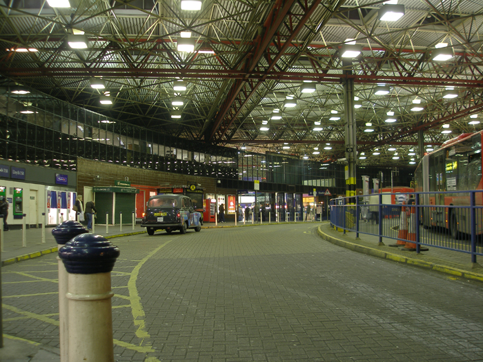 If the station had not been in the thick of a German bombing raid during World War II, we may well still see the graceful lines of the SER’s 1894 station today, and the LB&SCR structures of 1866. Sadly, it was not to be: on 29th December 1940, the 1861 ‘’Terminus Hotel’’ (in use as offices since 1893) was virtually destroyed by bombs, and the adjacent redbrick 1866 façade was also severely damaged. The classic symmetry of the trainshed had managed to avoid the savage of bombing raids, and the ex-SER platforms also escaped with minor damage. The remains of the hotel were demolished, and the LB&SCR façade was ‘’patched up’’, which merely involved blocking up the elegant stone-surrounded windows, not replacing the clock, and installing a very austere and short façade canopy.