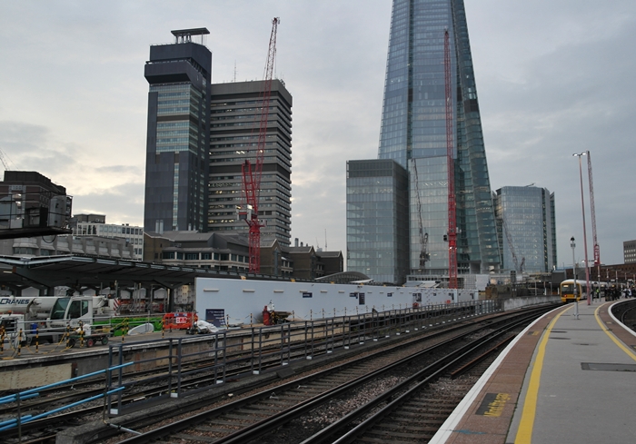 There remained a decent crowd on the ''through'' platforms at 19:21, nearing the end of the evening rush hour. However, it was noticeably quieter without those services which used the adjacent terminal platforms, not to mention the absence of ''Thameslink'' trains. On the right, we can see the footbridge's physical connection with the ex-SER offices in Tooley Street. © David Glasspool