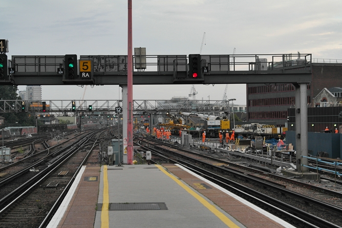 There was much hustle and bustle on the terminus approaches, track laying being in progress. The Class 66 in the background is believed to be No. 66169. Further down the line were a pair of ''Colas Rail'' Class 66s, a GBRf Class 66, and two Electro-Diesels. © David Glasspool