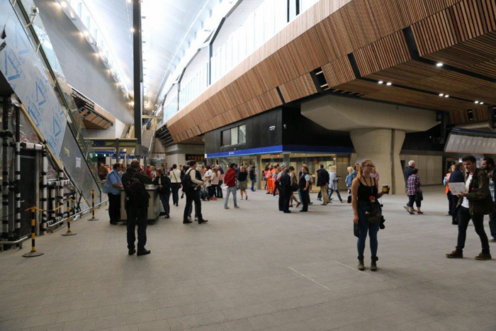 The organisation of the street-level concourse means that it can be used as a general thoroughfare, a ticket only being required to access that area immediately served by escalators and lifts to the platforms. This is a view towards Tooley Street. © Maidstone Man