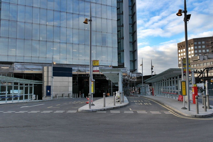 The outside of the ''Baby Shard'' is seen nearing completion. The bus station partially runs underneath the new structure. © David Glasspool