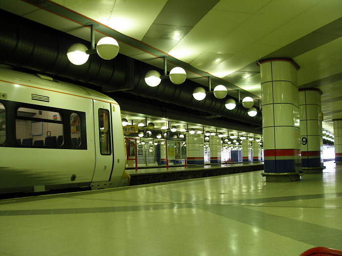 As per Charing Cross and Victoria's ''Brighton'' side, the platforms are permanently lit, and the light and airy atmosphere once provided by the graceful trainshed has long since gone. On the plus side, passengers are completely protected from rain and wind at the present station. © David Glasspool