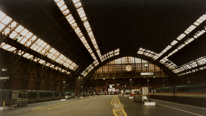 This southward view from 4th July 2001 shows the 25-foot-wide Hackney Carriage approach and illustrates the graceful lines of the trainshed. The glazed arrangement here dates from 1959, when work was completed in the hope of brightening the area up. © David Glasspool