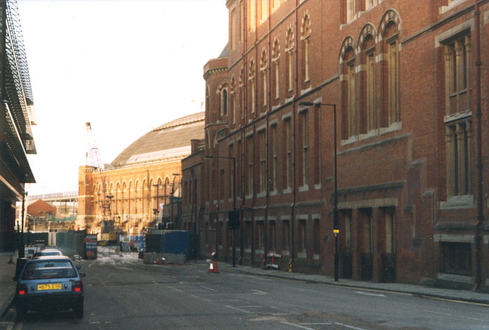 A view down the western flank of the station, alongside "Midland Road", shows building work in progress beside the trainshed wall. Here, a brand new building, constructed to the same red brick style as the station, was being created. This was to house an electrical substation and boiler, and also become home to the station operations department. © David Glasspool