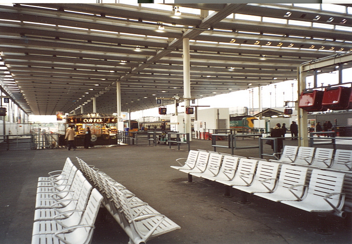 The new platforms are seen on 12th May 2004, number 8 still not quite ready. Again, the design employed here is a stark contrast to the Barlow trainshed, it instead being reminiscent of the present Euston station. During the design stage, it had been decided that there was little point in trying to replicate Barlow's trainshed to any degree, thus a wholly contrasting design was instead pursued. © David Glasspool