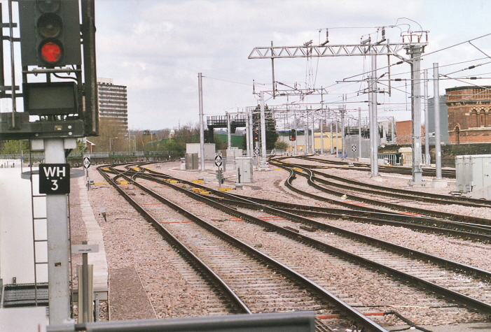 The lines branching off on the right were, at the time, used by the electrified Thameslink services. The double -track on the left was used by the diesel-powered trains. Note the rectangular red brick structure on the far right: this is in fact a vintage water tower, designed by Sir George Gilbert Scott. Of 1870s origin, it used to sit immediately adjacent to the old terminus approaches, but was actually relocated as part of the reconstruction work. It is Grade II listed and is seen on 10th April 2005. © David Glasspool