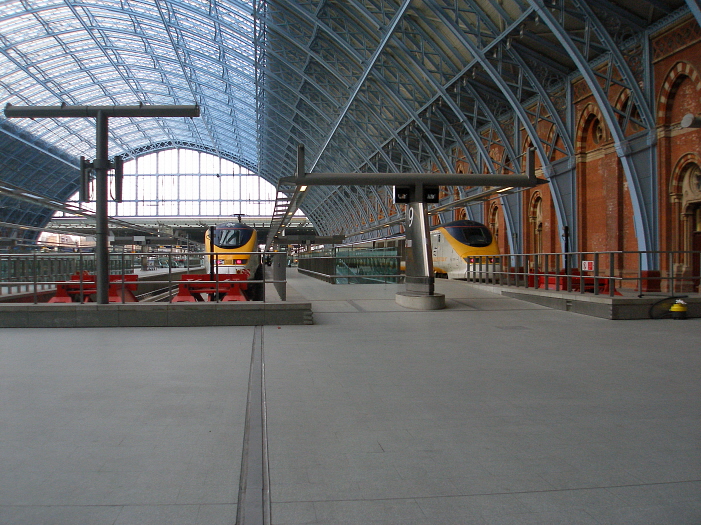 As earlier mentioned, the station came under the ownership and management of London & Continental Railways in 1996, and noticeable alterations began in October 2001, with the dismantling of overhead wires. Early proposals outlined a large flat-roofed extension beyond the extent of the existing Barlow trainshed, which would accommodate Midland Mainline platforms on its west side, domestic high-speed service platforms on its eastern side, whilst in the centre would be the elongated international platforms emanating from within the original station. The Midland platforms would total four, of which three would reside exclusively within the new extension, terminating before the Barlow trainshed. The fourth platform was to be extended right into the old station, and run parallel with the international platforms. The idea of a very long Midland platform within the trainshed was later abandoned, and as a result, this presented the opportunity to connect the station’s undercroft and the platform concourse above with a series of escalators. Furthermore, it would allow a number of large holes to be cut in the station floor, allowing natural light to reach the undercroft. The latter was to house a shopping arcade on its western side, whilst much of its central area would be taken up by the waiting lounge for Eurostar services. Curtailing the fourth platform also had the advantage of keeping diesel fumes away from the restored trainshed.
