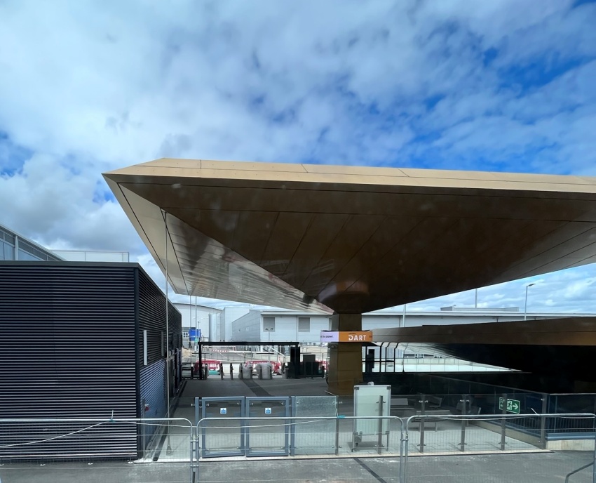 This gigantic two-tier glazed structure, measuring 130-metres by 25-metres, is the new “DART” terminus. It is situated on the eastern side of Parkway station, this of which it dwarfs. The footbridge linking the "DART" concourse to the railway station’s platforms can be seen on the right. © David Glasspool