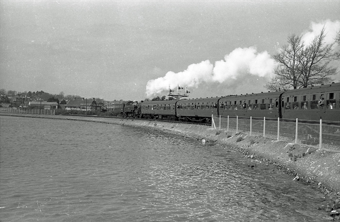 The 1938 platform lengthening made it possible to run ten-vehicle-long through services from Waterloo to Lymington Pier in high season. Neither the Pier nor Town stations were hosts to turntables, so main line engines would run back to Brockenhurst, where a 49-foot 11-inch turntable was available. Cattle pens had been another addition during the 1938 works, these being installed beside the signal box. Further extension of the slipway took place in 1942, the cost being met by the Admiralty.