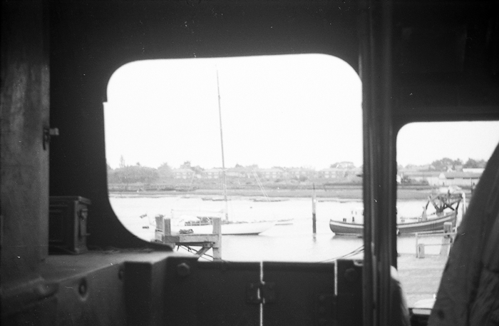 Now inside the cab of No. 80013, with the doors closed, we are afforded a bygone view over the splendid Lymington Harbour. © David Glasspool Collection