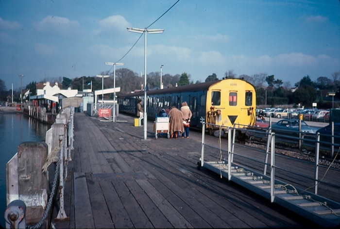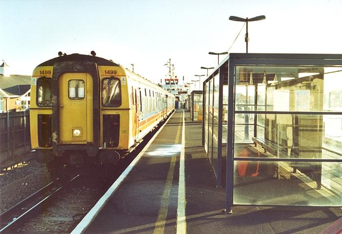 A southward view shows 2-HAP No. 6024 forming the shuttle service to Brockenhurst. This view better shows the construction of the 1938 canopy, and also reveals the Exmouth A more recent southward view shows 3-CIG No. 1499 forming the branch line shuttle service, the unit nearing the end of its days. By this time, much of the timber planking seen in the 1982 photograph had been covered over by an asphalt surface layer.Junction-manufactured prefabricated concrete. On the left is the car park for the ferry terminal, which encroaches onto land formerly occupied by the Pier station run-a-round loop. On the right can be seen one of the Isle of Wight ferries docked in front of the original slipway of 1938. © Mike Glasspool
