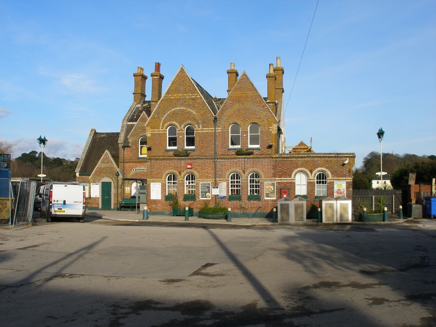 The splendid eastern façade of the station building was restored by British Rail. Lymington Town once again has an operating ticket office, open every morning and early afternoon, seven days a week. The green paint is indicative that the branch line has been formally designated a ''heritage line''. © David Glasspool