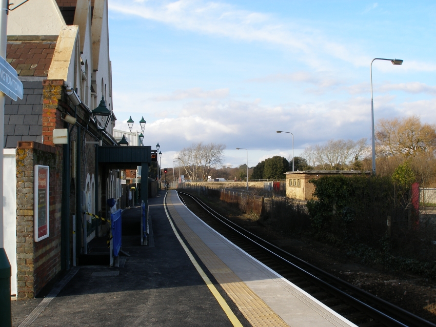A northward view includes the CLASP canopy which replaced the train shed roof after electrification. The traditional diamond-shape lamps date from 2005. The clapboard booking office of the temporary station from 1858 survived until 1953. © David Glasspool