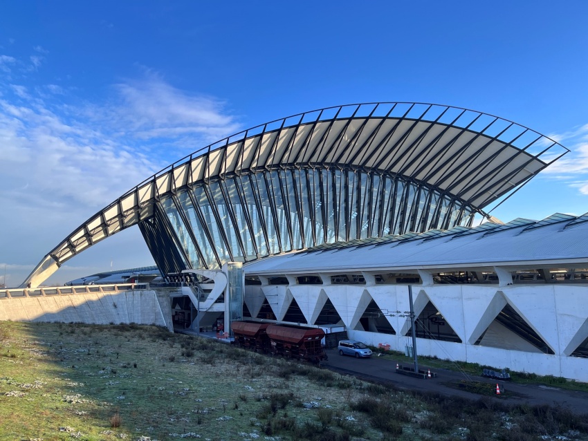 The morning winter sun reflects off the dramatic design of the main hall. The cost of building the station was shared between SNCF, the airport, and local and regional governments. © David Glasspool