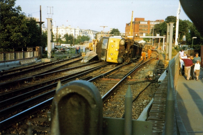 devoid of a canopy. The crash had ripped up much of the track work, and replacement rails and new ballast are