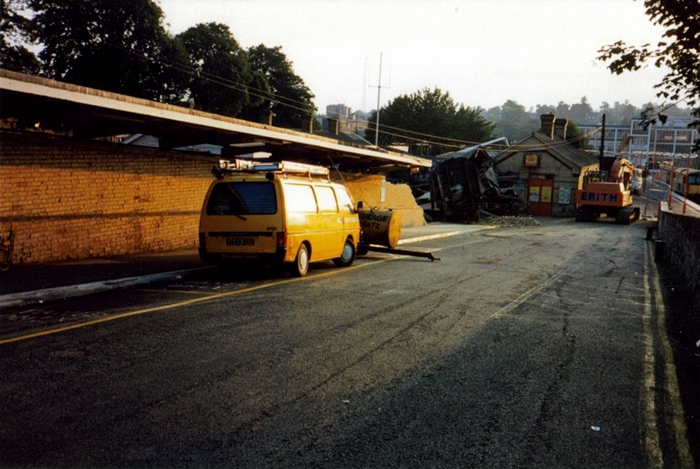 Five days after the crash, once normal service had been resumed, the ''down'' side building is seen completely
