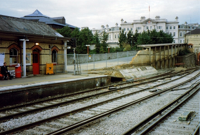 long-closed ''up'' side bay line (now host to SR prefabricated concrete fencing) and the extent of the ''up'' building's
