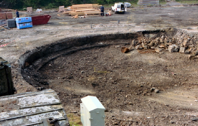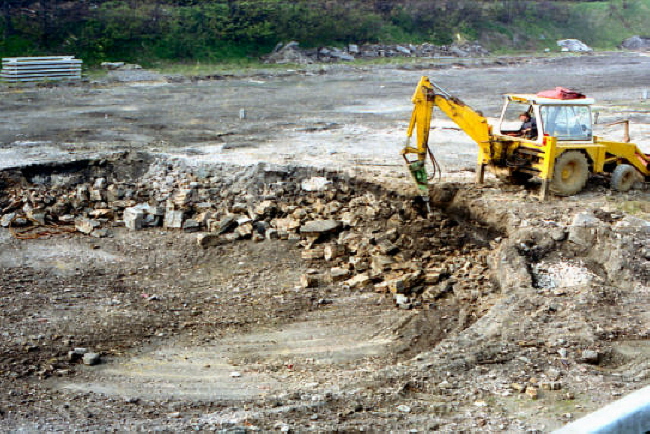 When redevelopment of the site to the south of the platforms began, the turntable pit re-emerged. After the turntable was removed, the pit effectively became a landfill site for burnt ash and rubbish from the trains. When the unsuspecting JCB driver passed over the site, his vehicle sunk! © John Horton