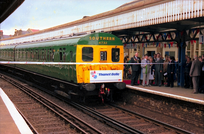4 SUB No. 4732: The celebrity unit formally opened the event, breaking a commemorative tape draped across the lines of platforms 1 and 2. It was used thereafter to form a shuttle service between Ramsgate and Margate during the gala.