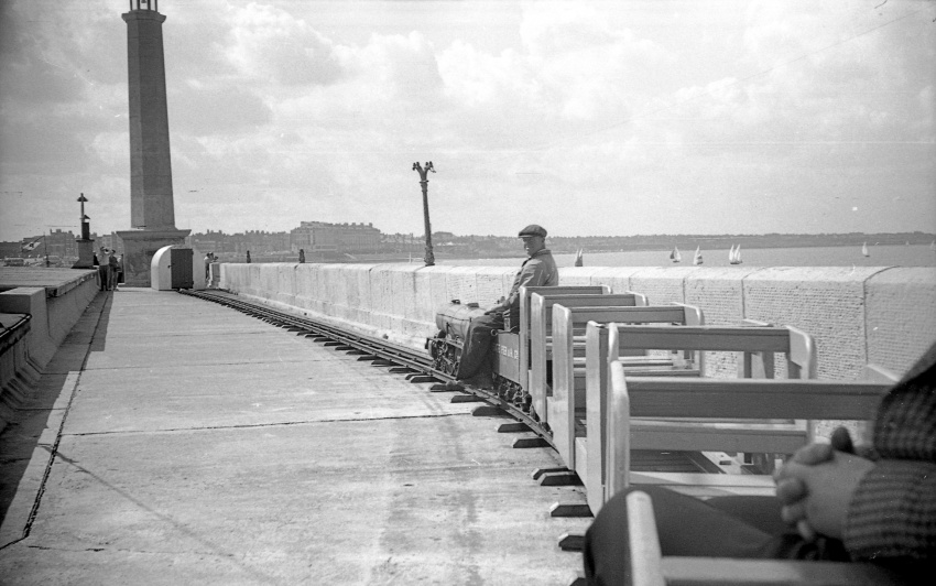 A railway along the harbour arm was a much later affair. As part of a series of enhancements made at Margate in time for the Whitsun holiday of 1948 (16th to 17th May of that year), a miniature railway was laid along the pier: