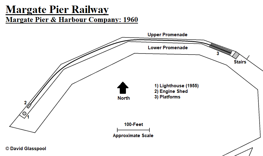 The steam-hauled pier railway had a fifteen-year existence, 1963 being its last season. From 1964 onwards, it was replaced by a 10¼-inch gauge railway on the 1855-opened iron-built Margate Jetty, situated to the east of the harbour arm. From the outset, the 1964 jetty railway was diesel-hauled, a miniature replica of a "Western" (Class 52) diesel-hydraulic locomotive having been built specially for the tourist line. The replacement line lasted little over a decade; the last season was summer 1974, after which the iron jetty was permanently closed due to the need for expensive repairs. It was reported at the time that The Margate Pier and Harbour Co. had made a loss of £10,000 over the previous five years, through repair of the jetty’s steelwork and piles (ref: East Kent Times and Mail, Friday 10th May 1974).