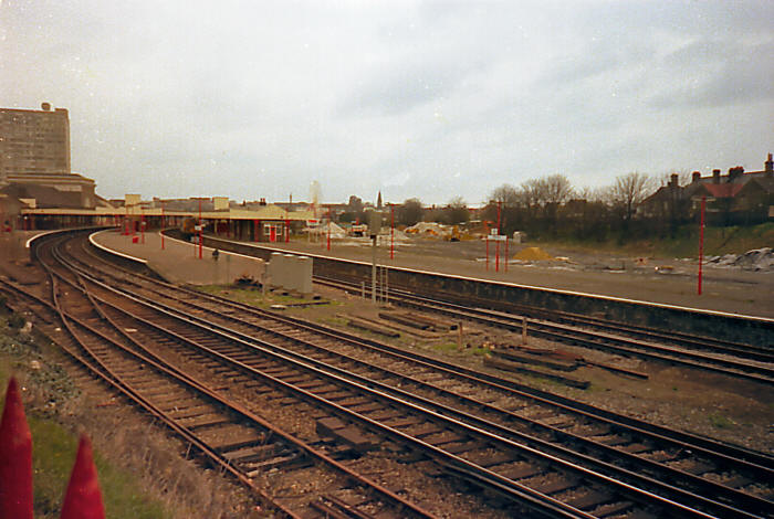A general easterly view across the site shows redevelopment of the former carriage sidings site in full swing. The track in the immediate foreground is that which leads to the parcels depot (which rests on the former approaches to the LC&DR engine shed). Simplified canopy valances are in evidence, as a result of truncation during the 1970s. © John Horton