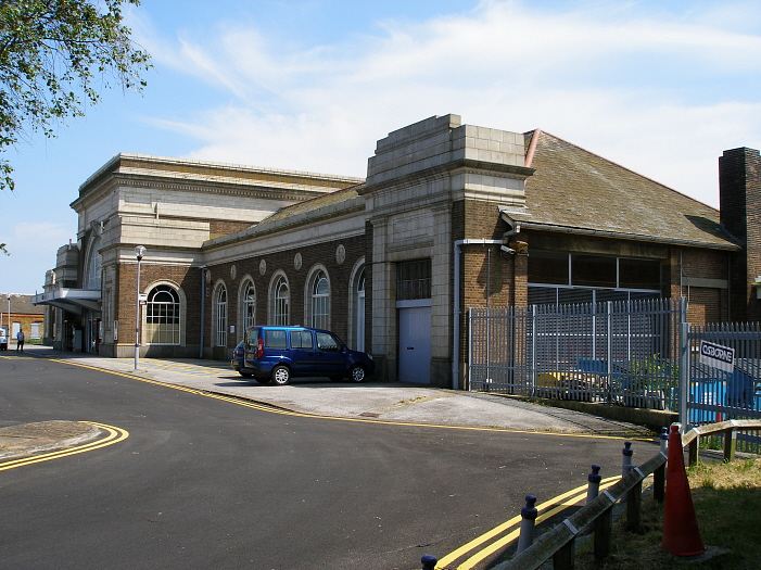 This view of the lesser-seen western elevation of the main building shows a large gap in the structure's end wall, which was formerly used as part of the parcels depot. © David Glasspool