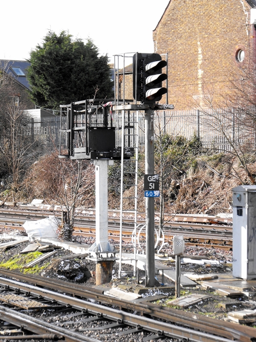 On the ''down'' Chatham line, after the starter signal at the Ramsgate end of platform 1, was the 4-aspect automatic signal in Dane Valley (GE222). Now, a new signal post and head has been installed in the middle of this section to speed up traffic. The new signal is 20 yards before the old Margate East Station.