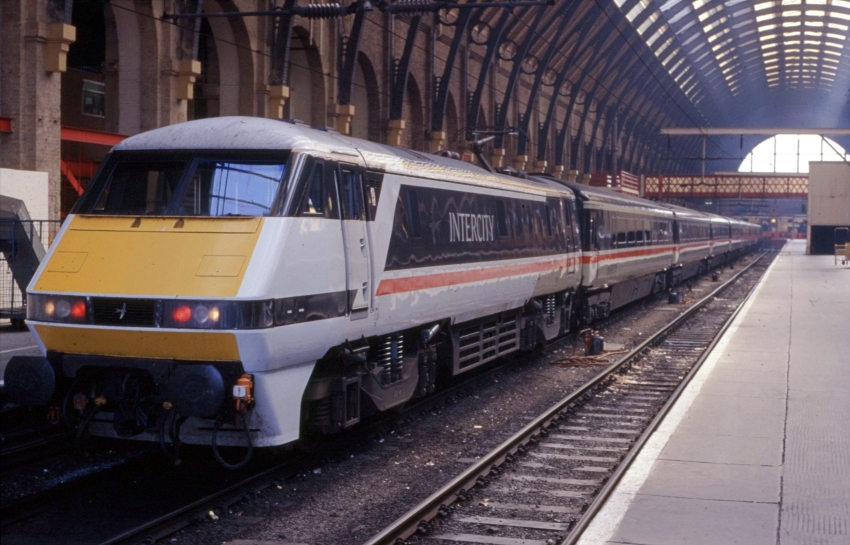 Promotional material for Mid-Kent Parkway comprised photographs and artists' impressions of InterCity 225 sets, suggesting that these would form the high-speed domestic services through Kent. The type was introduced to the East Coast Main Line in March 1989. Rather than being serious contenders for the CTRL, perhaps it just made sense to include Britain's latest high speed electric train as part of the case for the proposed station and route. The above view depicts Class 91 No. 91005 at the head of the "Yorkshire Pullman" at Kings Cross. © David Glasspool Collection