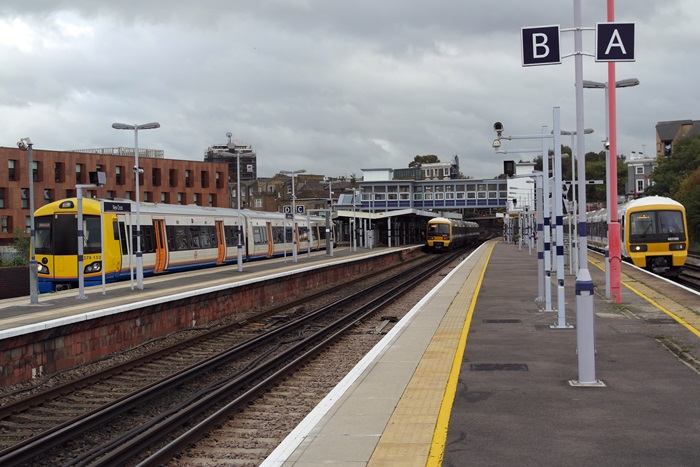 As at many of the stations which have received such structures, the new footbridge at New Cross has by far become the site's dominant structure. Construction took most of the latter half of 2014 and it finally opened to passenegrs in December. At platform D, on the left, Class 378 No. 378152 is seen awaiting departure for Dalston Junction; in the background is Class 465 No. 465178 on an Orpington service; finally, on the right, No. 465186 passes through non-stop, Charing Cross-bound. © David Glasspool
