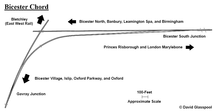 The track of the Bicester Chord was laid in December 2014, this of which is on a 1 in 33 gradient and subject to a 40 MPH speed restriction. Click the above for a larger version. © David Glasspool