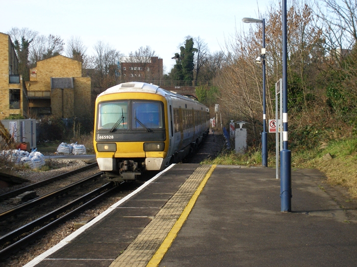Just passing through: Class 465 No. 465928 has just burst out of Penge Tunnel and is continuing non-stop from London Victoria to Canterbury East. The signal box was formerly positioned at the end of the platform here, immediately to the right of the unit. © David Glasspool